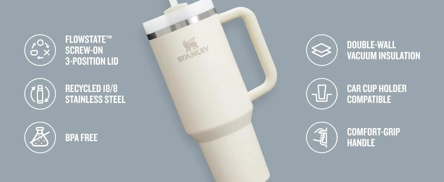 Stanley Quencher H2.0 FlowState, the ultimate insulated drinkware designed to keep your beverages at the perfect temperature, whether you’re sipping on a hot coffee or a refreshing smoothie.